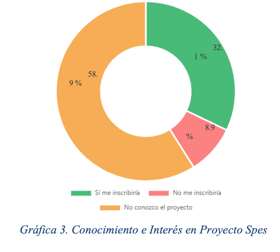 Un hallazgo significativo es que el 58.9% de los encuestados no conoce el proyecto, mientras que solo el 8.9% expresó que no se inscribiría. Esta distribución sugiere que el principal obstáculo no es el rechazo al proyecto, sino el desconocimiento del mismo. La baja proporción de rechazo explícito indica que cuando los académicos comprenden la propuesta, la receptividad es considerablemente alta. En el resto de decanatos de la Universidad el porcentaje de disposición es muy similar.