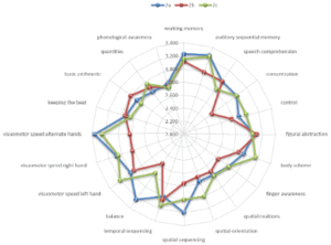 Figure 3. Radar Graph Representation of the Performance Profiles of Three First-Grade Classes