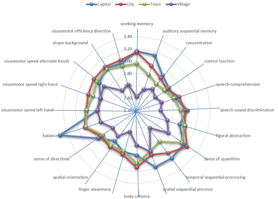 Our recent data analysis reveals that cognitive differences associated with living in rural areas are already detectable at the very start of first grade. While the deficits in cognitive functioning are present in almost every area assessed, they exert the strongest influence on those competencies that are essential for success in school, such as finger awareness, visuomotor abilities, sequential thinking, and working memory.